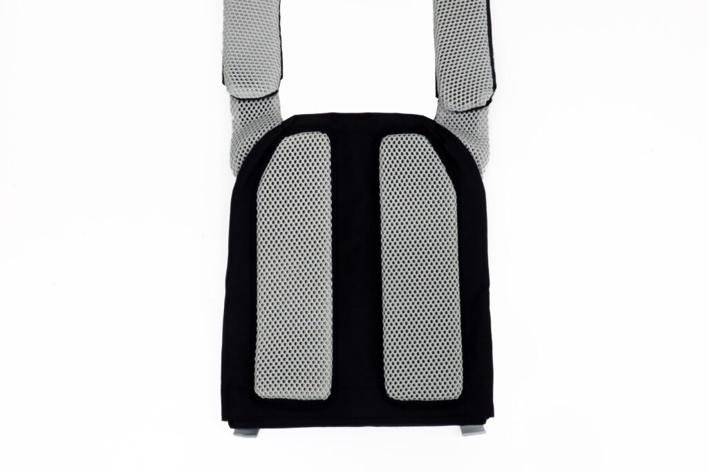 前後とも体に接する部分は肉厚のメッシュパッドを装着。パッドは左右のみで、これは通気性を考慮した構造となっています。