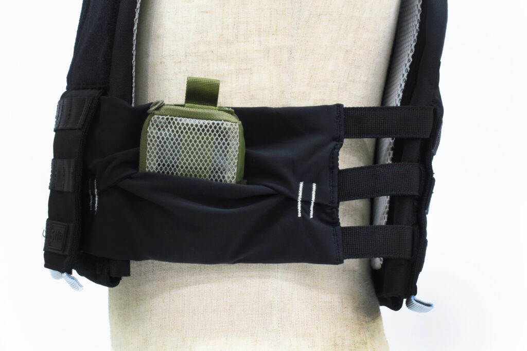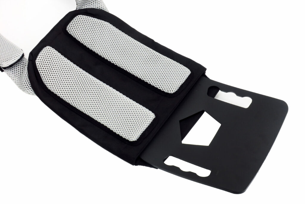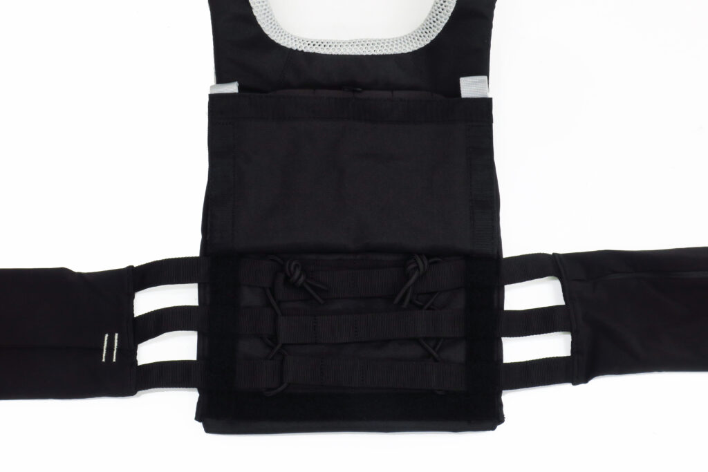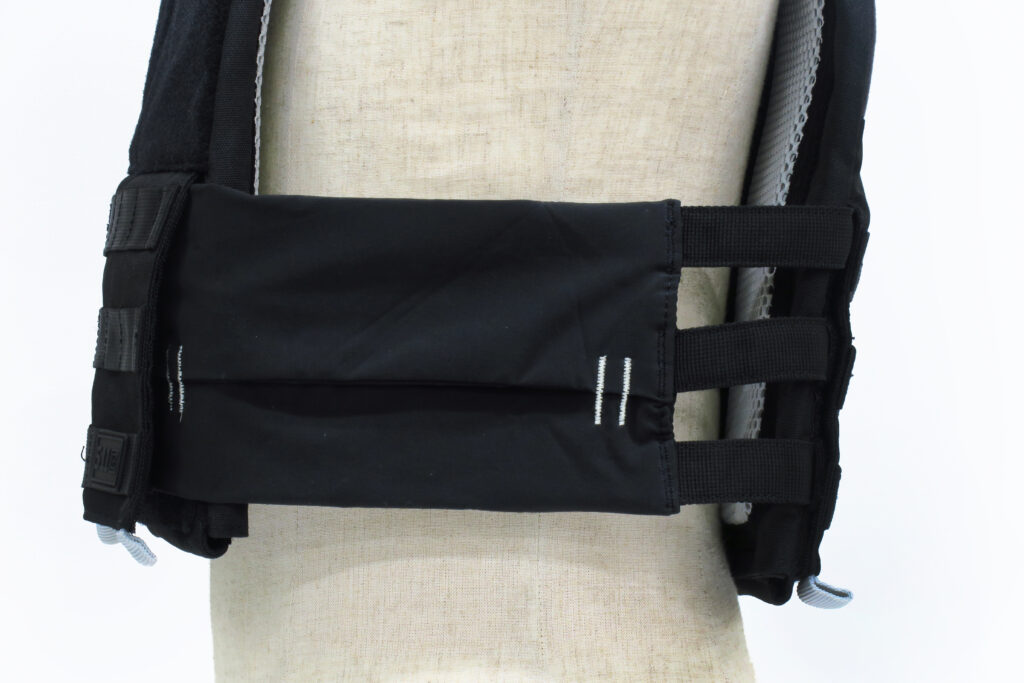 このタックテック トレーナー ウェイト ベストは完全にトレーニング用ですが、作りはしっかりしており、もちろん防弾プレートも収納できます。体に接触する部分には肉厚のメッシュパッドがあるので、要警護者やVIP用として使用もできそうです。