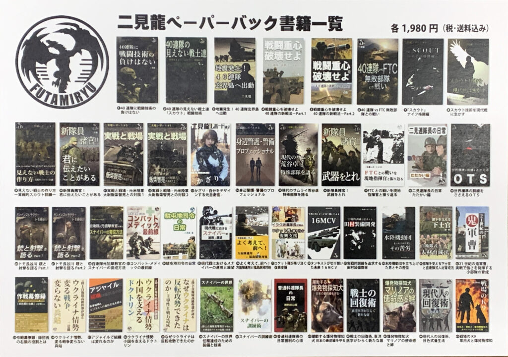 プロショップ エリートでは、陸自元40普連連隊長の二見氏執筆の書籍を豊富に取り揃え、二見 龍氏BOOKフェアを開催中!